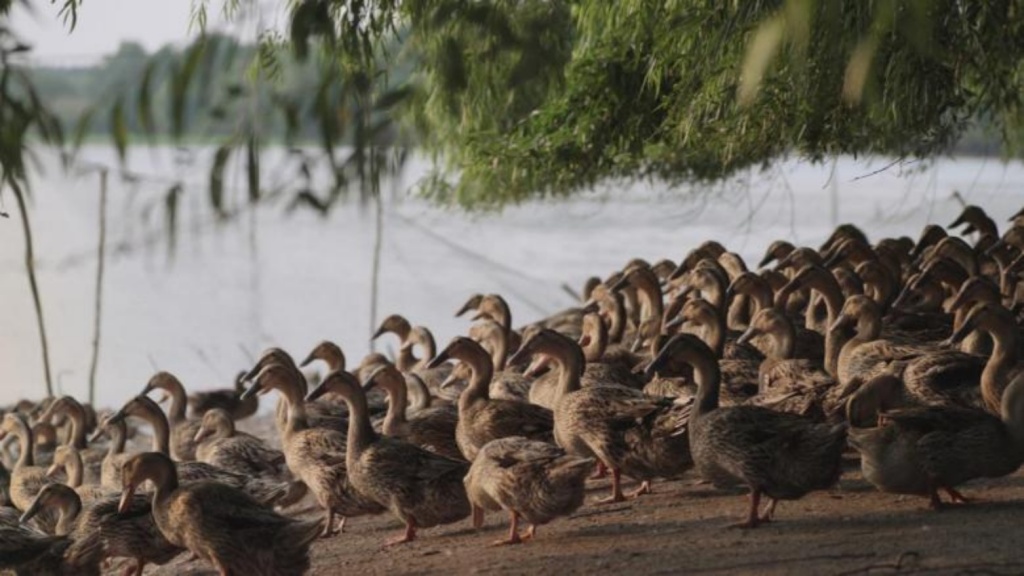 渔民们开始转型。56岁的“扁担姐”张玉鸾,十几岁接过父亲挑着赶集卖鱼的扁担,如今在湖畔经营生态农场,吸纳昔日渔民采用“种养”结合的模式。生态养殖填补了过度捕捞的暂停期,高邮湖渐渐恢复生机,候鸟前来安家嬉戏。二十年前这片湖水曾因人而伤,如今也因人而愈。
