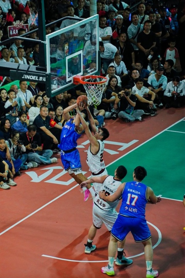 当天晚上8点,冠亚军决赛在台盘村村BA球场打响。第一节比赛,晋江队打出一波10:4的小高潮率先取得领先,咸丰队随后还以一波6:0抹平分差。随后,两队各有攻防,以24:24的比分结束首节争夺。第二节比赛中段,晋江队打出一波9:0,取得11分的领先。咸丰队则在刘韦江的带领下顽强追分,但晋江队表现更加出色,以59:52领先7分进入中场休息。