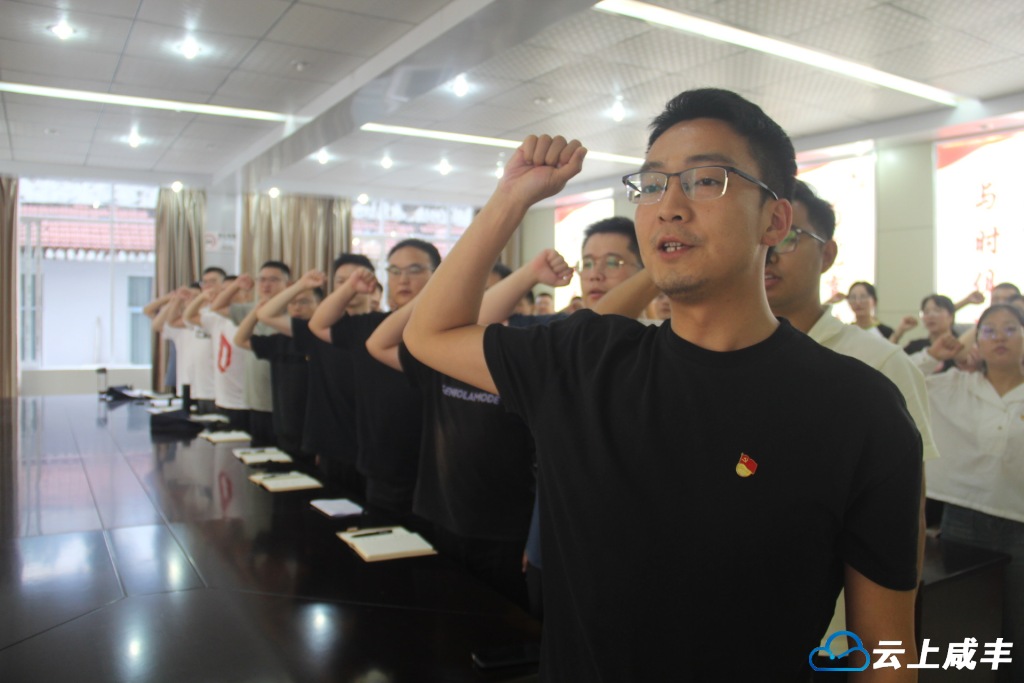 全体党员举起右手,面向鲜红的党旗郑重宣誓,铮铮誓言,字字千钧,表达了身为新时代共产党员的信仰与追求、责任与担当,许下了对党忠诚、永不叛党的坚定承诺,坚定了作为共产党员永远跟党走的信心和决心。