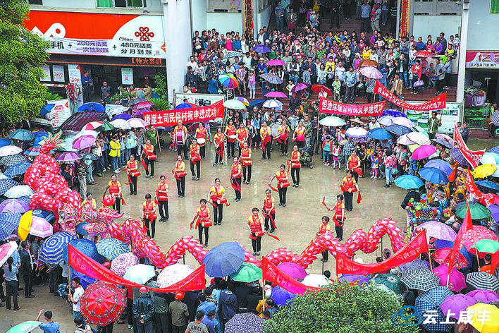 2015年7月5日,咸丰县唐崖镇干部群众自发举办文艺展演,载歌载舞庆祝申遗成功。