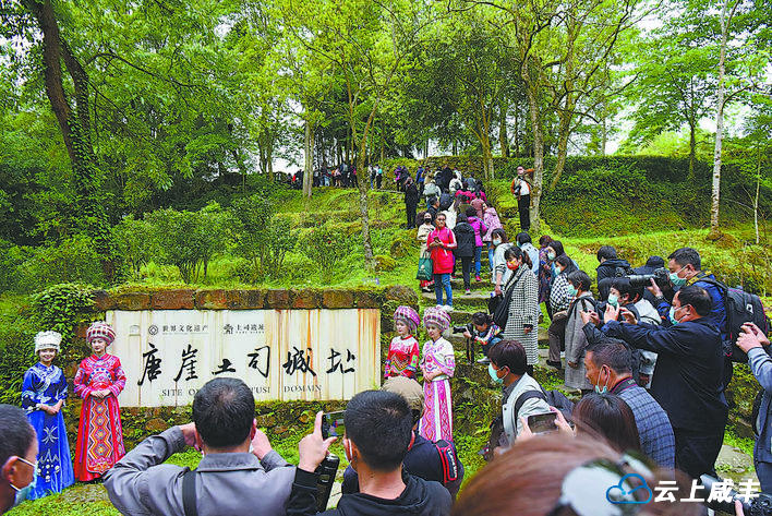 2022年4月29日,唐崖土司城址世界文化遗址公园内游人如织。