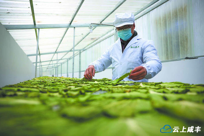 摊晾包裹霉豆腐的菜叶。(全媒体记者杜迪纳 摄)