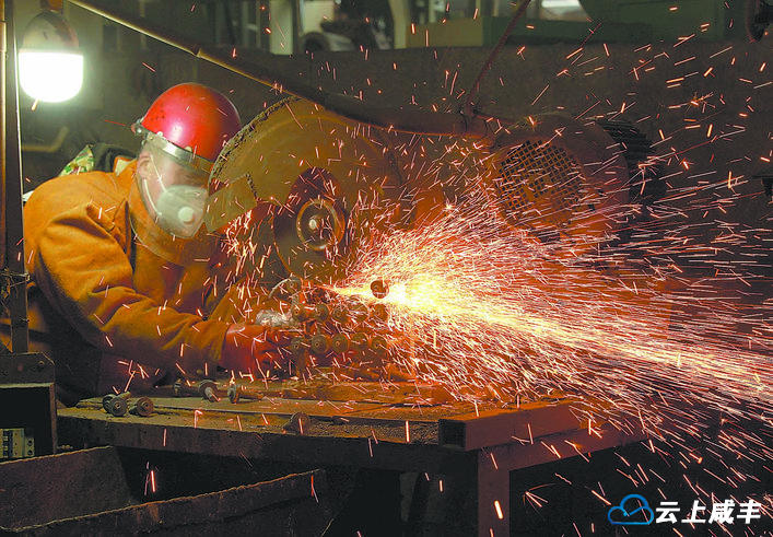 咸丰中侨精密铸造科技有限公司的工人对铸件进行切割处理。