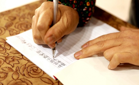 土家山民歌是一种口头传承的民间艺术形式,其音调高亢悠扬,情感真挚热烈。吴清香除了传唱既定的歌词外,还不时在家里即兴写一些朗朗上口的唱词。打开吴清香的笔记本,上面密密麻麻地记录了《绣荷包》《倒采茶》《十根帕子》《十劝姐》等民歌300余首,每翻到一页,都会情不自禁地哼上几句。