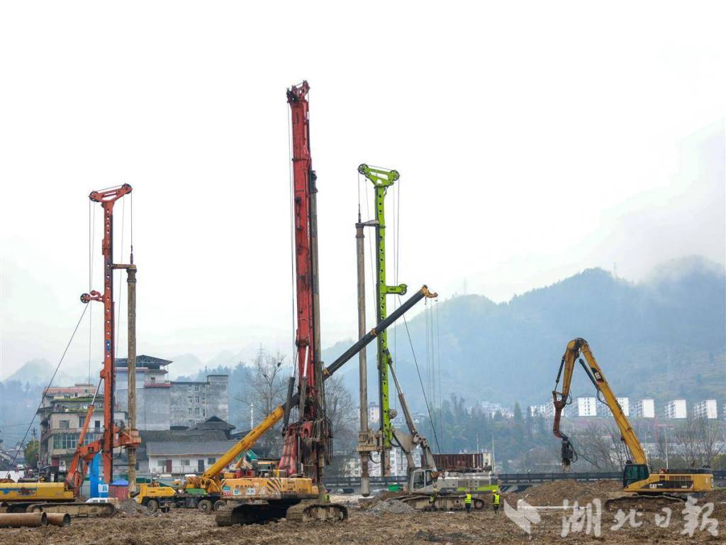 3月7日,咸丰县唐崖河两岸机械轰鸣,在唐崖土司城址文物保护及展示利用项目建设现场,工程车辆穿梭往来,工人们紧张有序作业。