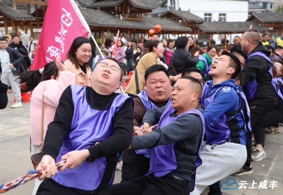 比赛设置了滚铁环、“丰收挑担接力”“玉米投掷五谷丰登”、拔河等特色项目,为春社文化活动增添了浓厚的乡土韵味与竞技激情。