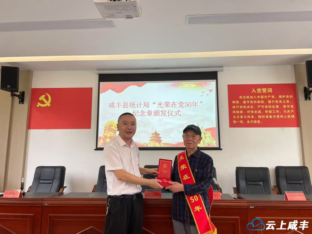 一场庄重而温馨的纪念章颁发仪式点亮全场。当“光荣在党50年”纪念章呈现在大家面前时,全场响起热烈掌声。统计局退休老党员李良生动情地说:“1973年我光荣入党,50年来我见证了统计事业的蓬勃发展,今天能在这样一个具有特殊意义的地方获颁纪念章,感到十分荣幸。”青年党员代表向老同志献上绶带,表示:“老一辈统计人严谨求实的工作作风为我们树立了榜样。我们要传承好统计人的优良传统,在新的历史时期接续奋斗。”