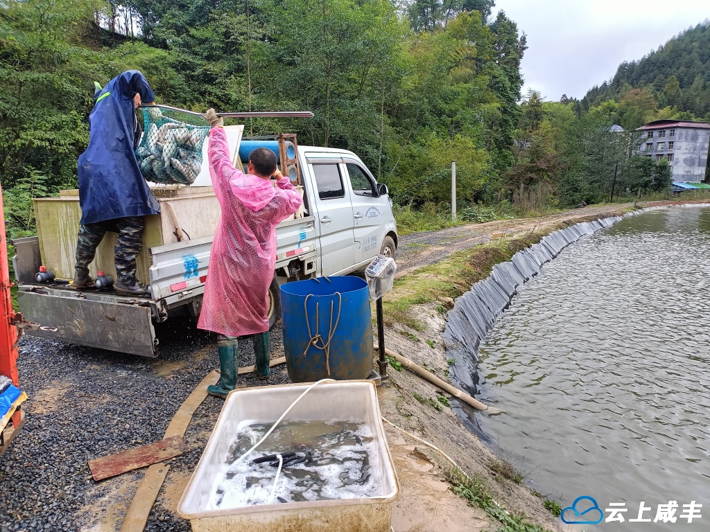 本网讯(通讯员刘德云)10月21日,咸丰县鲟源生态农业有限公司员工正在高乐山镇白水坝村万家沟水产养殖基地捕捞鲈鱼,准备发往恩施。