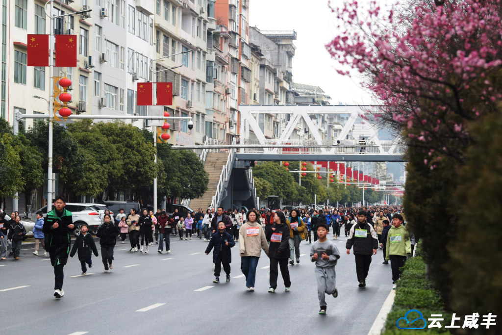 本网讯(全媒体记者李维君)2月15日,市民在咸丰县城参加健康跑。当天是周末,咸丰县组织开展新春活力跑、智趣亲子跑及健步走活动,2100多名市民走出户外、运动健身,乐享春日时光。