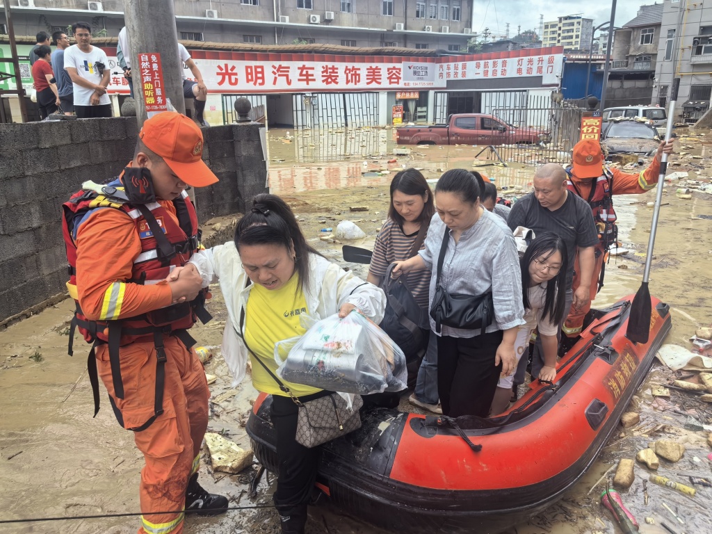 灾情发生后,咸丰县迅速启动防汛应急响应机制,实时滚动发布预报预警信息,开展紧急救援。当地防汛抗旱指挥部统一部署,调派125名消防救援人员,出动22台消防车、11艘舟艇,携带救援绳、救生衣等抗洪抢险救援装备,赶赴高乐山镇、曲江镇等地进行救援。