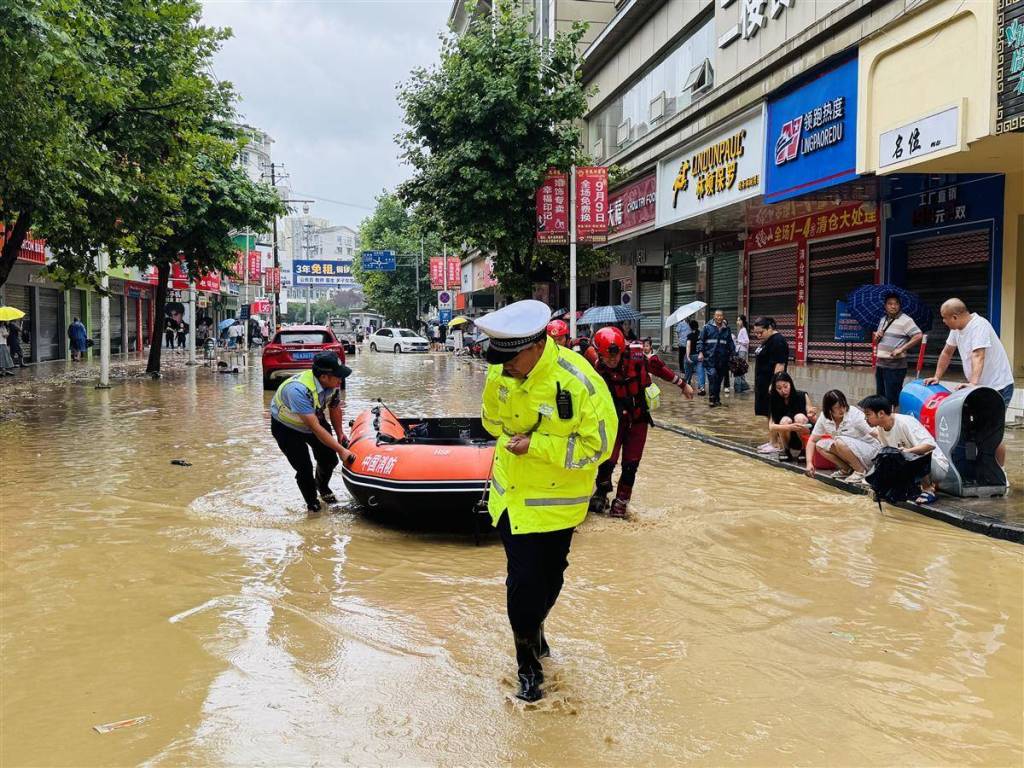 消防救援部门调派125名消防救援人员,出动22台消防车、11艘舟艇,携带救援绳、救生衣等抗洪抢险救援装备,赶赴高乐山镇、曲江镇等地进行救援。