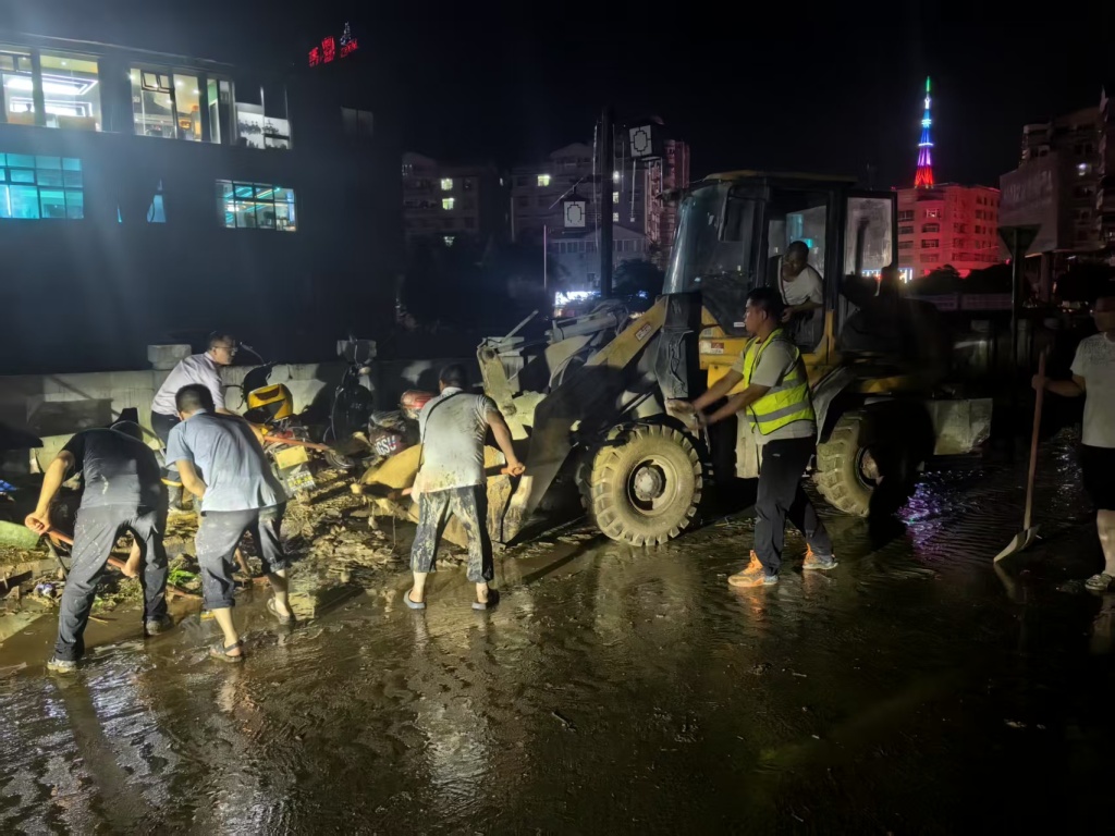 抵达现场后,顾不上山路颠簸带来的眩晕与疲惫,队员们立即投入“战斗”。他们俯身清理堵塞沟渠的杂物,启动抽水泵排除积水。经过数小时艰苦奋战,皇城广场区域的险情终于得到控制,秩序逐渐恢复。