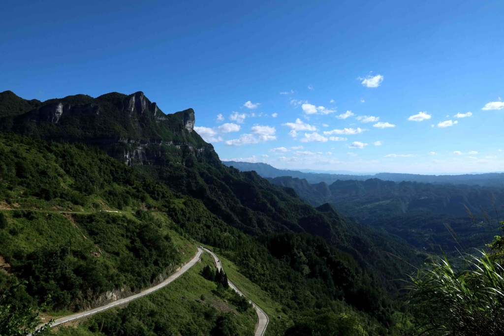 近日,在湖北恩施咸丰二仙岩省级湿地自然保护区,蓝天与青山相映成趣。(通讯员舒淑摄)