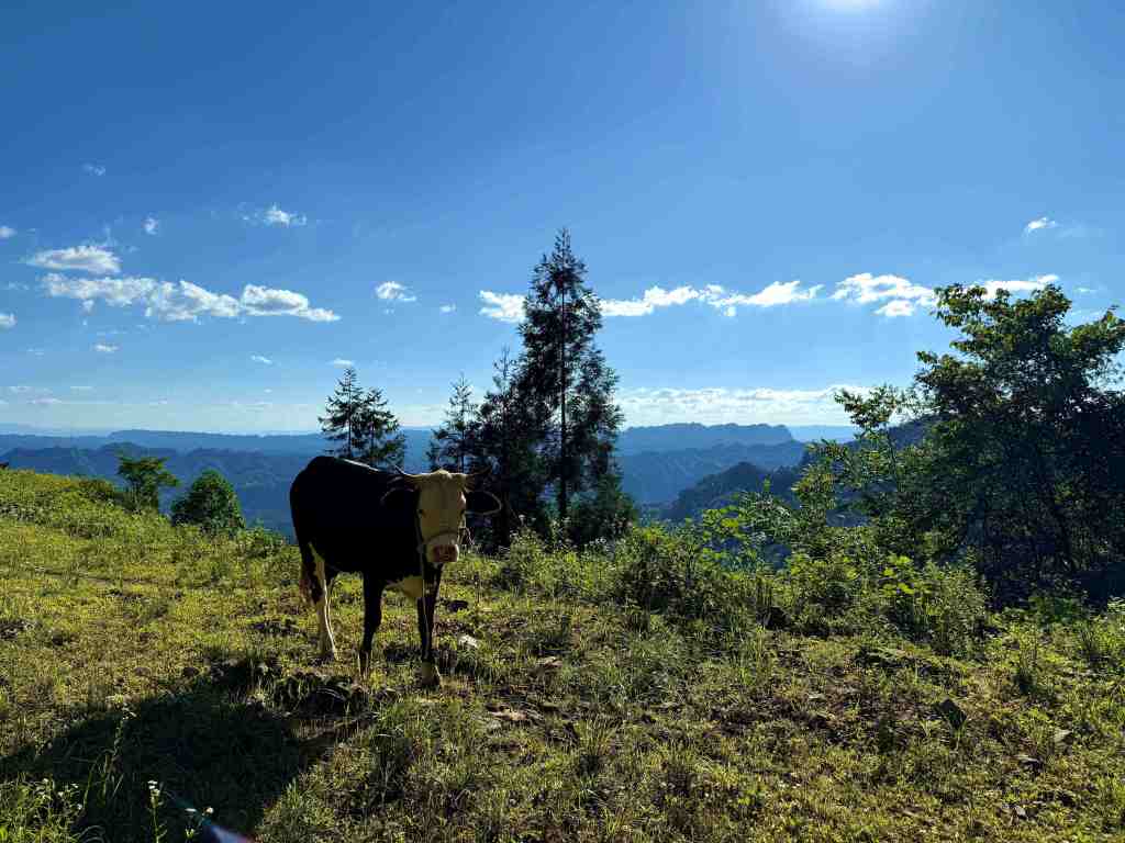 一头黄牛在咸丰二仙岩省级湿地自然保护区悠闲地散步。(通讯员舒淑摄)