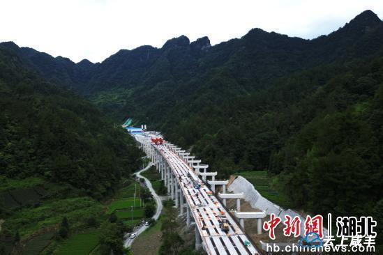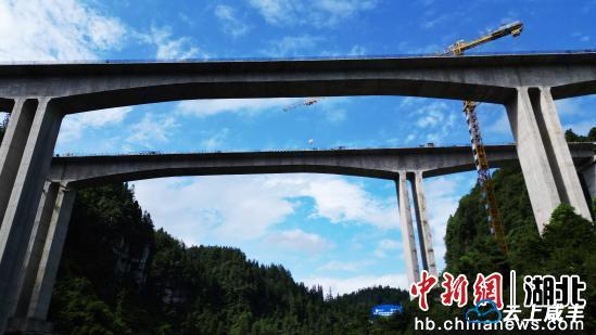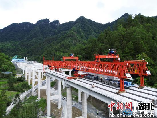 近日,湖北省咸丰县小村乡境内,中交二航局的建设者正在利(川)咸(丰)高速洞湾1号大桥架设T梁。利咸高速公路是国家重点规划项目,路线全长84.62公里,计划2026年全面建成通车。项目建成后,对构建鄂湘渝毗邻地区纵向快速通道、带动武陵山区资源开发利用、促进区域乡村振兴及经济社会发展具有重要意义,利川到咸丰的交通时长也将由2.5小时缩短为1小时。(李维君 摄)