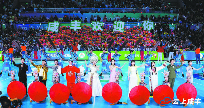 几天前的开幕式上,一场跨越六个世纪的“土司巡游”以穿越式展演还原历史场景。开道武士执戈先行,凛冽气势将全场拉回金戈铁马的土司时代;华服“土司”稳步前行,衣上每道纹饰诉说着昔日的尊荣;摆手舞鼓点铿锵,与篮球场跃动的节奏奇妙共鸣;满载的农耕箩筐,传递着这片土地的丰收密码。