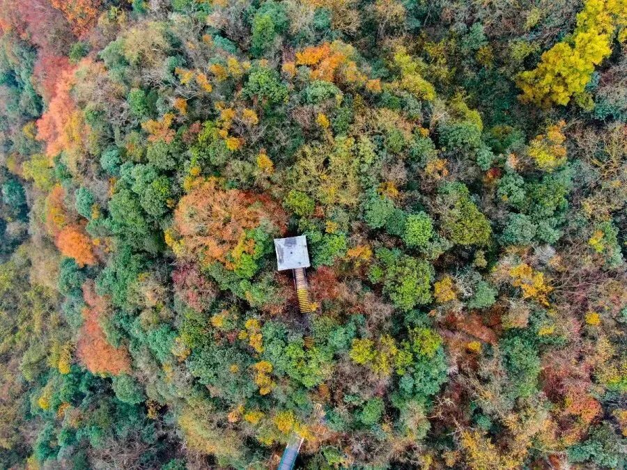当第一缕秋风拂过湖北省咸丰县坪坝营林海,大自然便开始细细点染漫山林木,织就一幅流动的斑斓画卷。