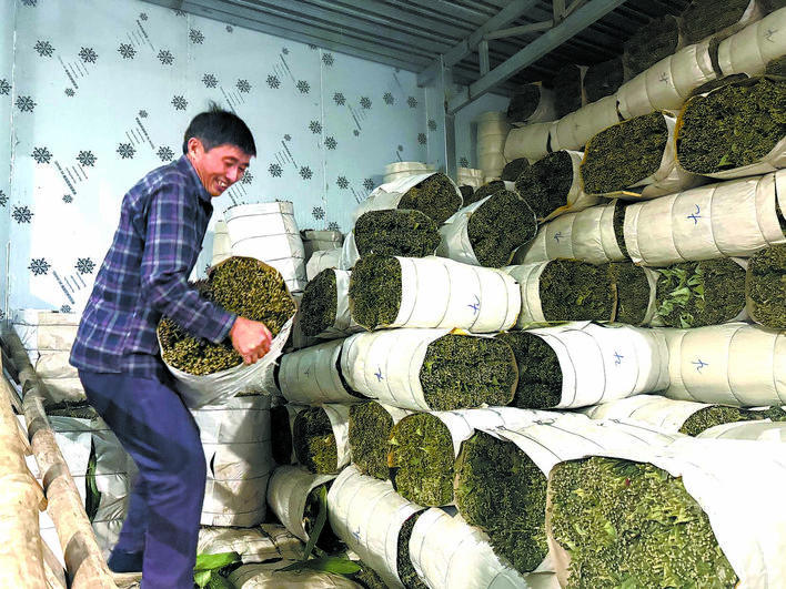 近日,恩施市板桥镇中国板党现代产业园内,工人采用“三搓三抖”传统加工工艺加工板党。(通讯员 王开明 摄)