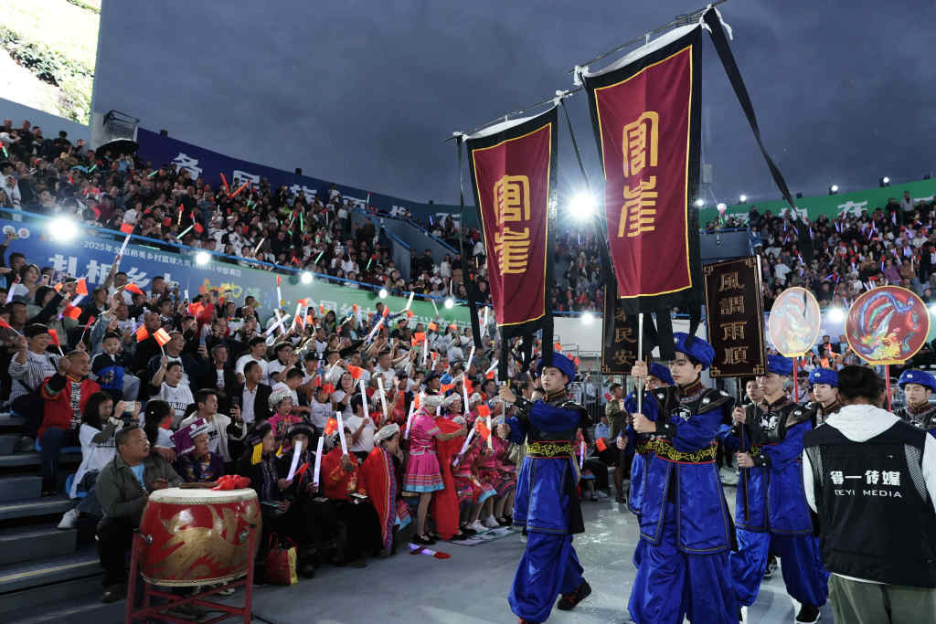 开幕式观众云集,现场灯光与民居灯饰辉映成景,彰显赛事兴农初衷。