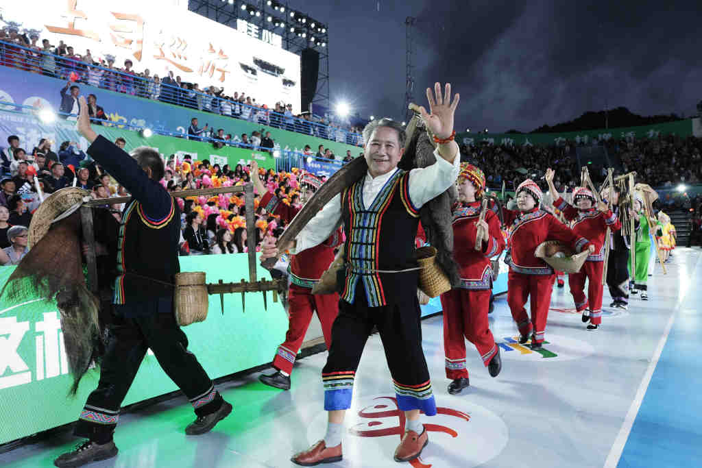 演员在开幕式上表演具有地方特色的文艺节目《农耕秀》。