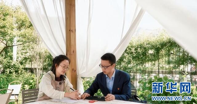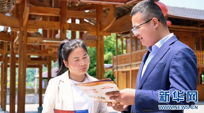 图为信贷人员进民宿推介“两山民宿贷”产品。新华网发